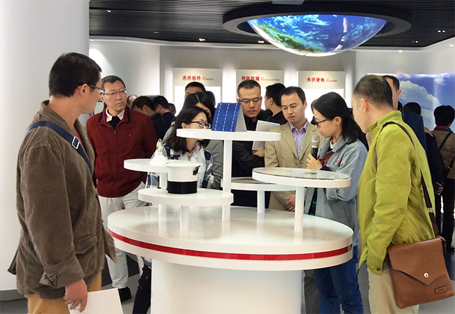 在研究院,考察團聽取了公司相關負責人關于企業(yè)發(fā)展歷程、經(jīng)營業(yè)績、主營產(chǎn)品EVA膠膜和背板的介紹。同時,了解了企業(yè)在新材料領域的研究成果,近距離接觸、觀察企業(yè)產(chǎn)品。